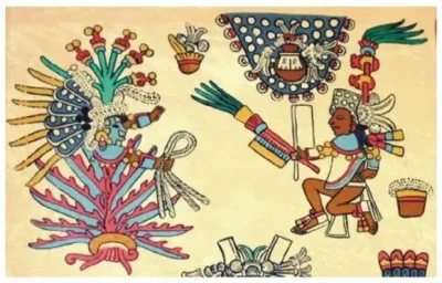 Según la mitología mexica, cuando los dioses crearon el mundo y a los seres humanos, se dieron cuenta de que los hombres necesitaban un medio para expresar su adoración y celebración por la vida. Fue así que el dios del viento, Ehécatl-Quetzalcoatl, concibió la creación de una bebida sagrada que pudiera provocar la alegría de los hombres. Para ello, Ehécatl se dirigió hacia la diosa del maguey, Mayahuel, y la trasladó a la tierra. Juntos se transformaron en un árbol con dos ramas: una llamada Quetzalhuéxotl, asociada a Ehécatl, y otra denominada Xochicuahuitl, vinculada a Mayahuel. Al percatarse de su ausencia, la abuela de Mayahuel, Cicimitl, emprendió su búsqueda, y al encontrar el árbol, rompió la rama que correspondía a la diosa, de la cual brotaron los primeros huesos del agave. Así, el sacrificio de Mayahuel dio origen al maguey (o metl), una planta que no solo sería la fuente de bebidas sagradas como el pulque, sino que, posteriormente, al ser destilada, se convertiría en el mezcal, bebida que celebraría a los dioses y sería fuente de gozo para los seres humanos.