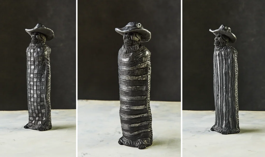 Piece created by the recognized master of black clay, Carlomagno Pedro Martínez, this work pays homage to his father, grandfather and great-grandfather, who transmitted him the knowledge and secrets of this emblematic Oaxacan technique. It is a unique work that embodies the family memory and the mastery that distinguishes the artisan’s work.