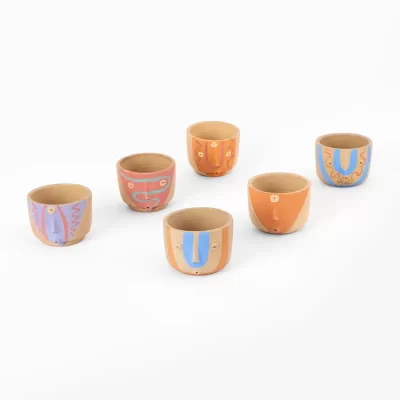 Red clay mug with face design
