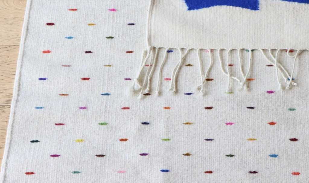 The process begins with the selection of the wool, which must be of excellent quality to ensure the durability of the rug. The wool is then washed and carded to clean impurities and align fibers. It is then spun by hand or with a spinning wheel into yarn ready for weaving.